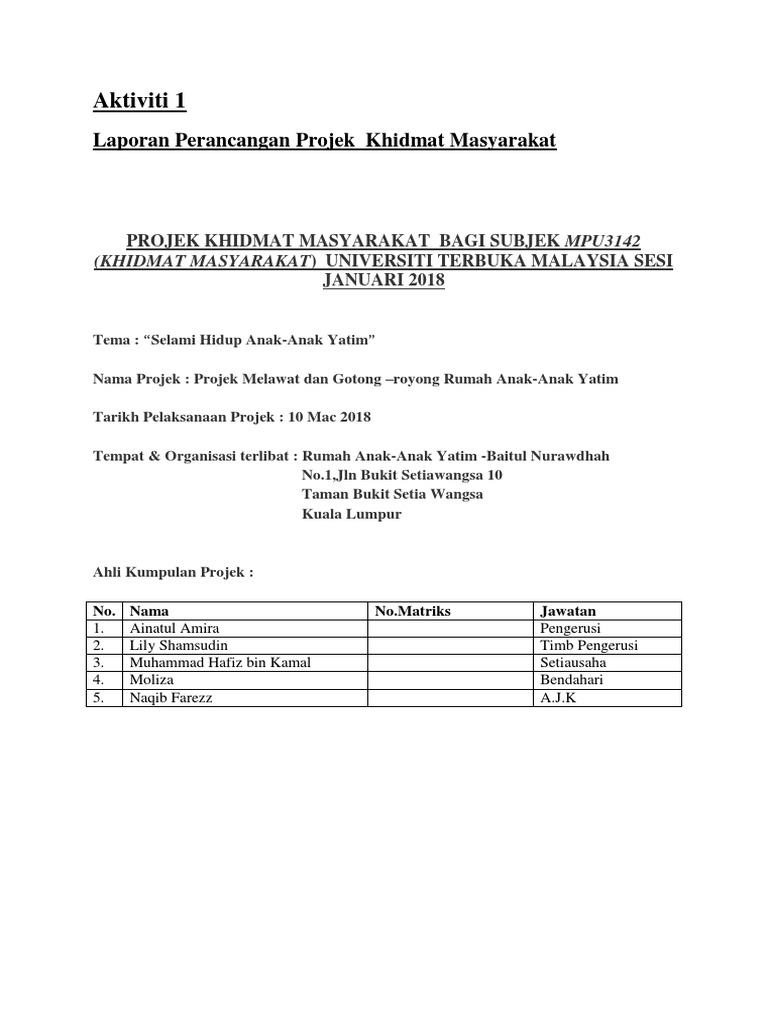 Sekolah menengah kebangsaan mahang laporan pelaksanaan projek khidmat masyarakat. Yang sekarang masuk lingkungan kampus universitas gajah mada.dan atas meningkatkan aksesibilitas masyarakat terhadap energi, mineral dan informasi geologi. Contoh laporan pkl smk ap (administrasi perkantoran). Rancangan khidmat masyarakat universiti sains malaysia daripada mahasiswa kepada. Jom pi muzium padi tarikh :