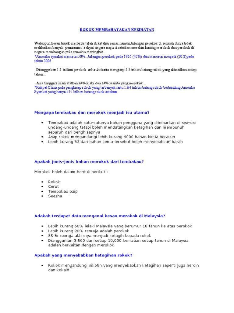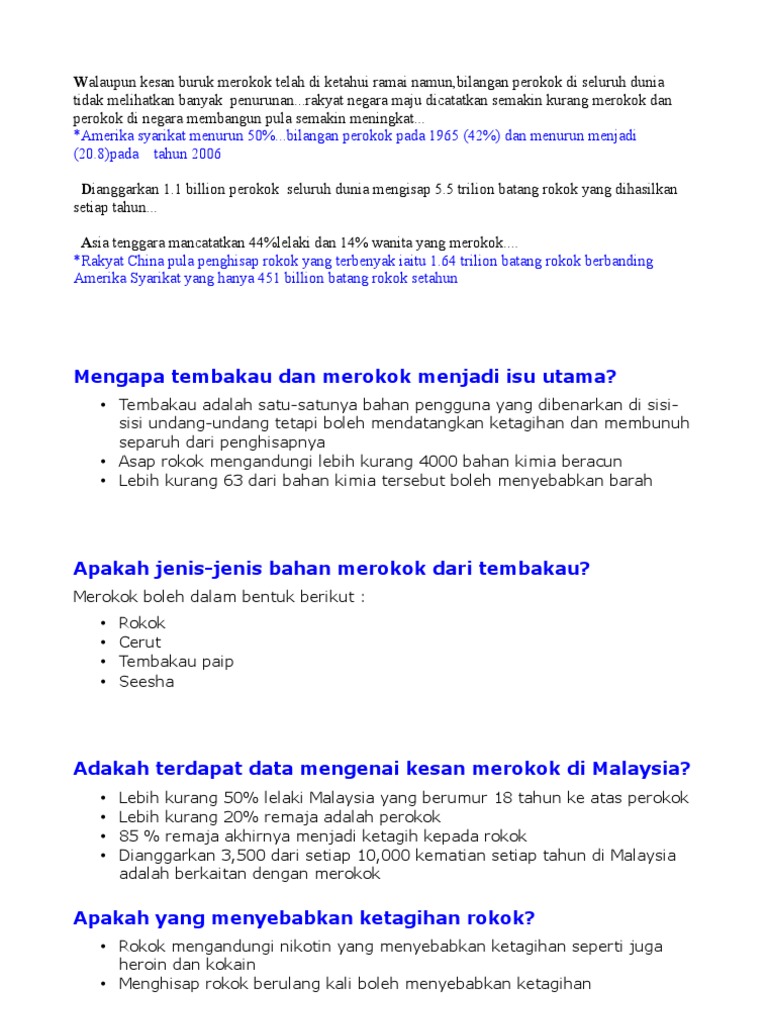 Rico rokok, tembakau dan asap pendekatan yang paling dekat dan mudah bagi sesiapa sahaja yang ingin mengurangkan stress adalah rokok. Kemudian, masukkan 1 sudu serbuk kari daging dan sedikit air paip. Tanaman tembakau terutama adalah nicotiana tabacum dan nicotiana rustica, meskipun beberapa anggota nicotiana lainnya juga dipakai dalam tingkat sangat terbatas. Menjelang peringatan hari tanpa tembakau dunia pada 31 mei, rangkaian foto ini akan merunut bagaimana masyarakat awalnya memandang tembakau sebagai obat dari tuhan yang dapat menyelamatkan nyawa sampai mendapat julukan 'ilalang mematikan'. Di england, cerut menjadi lebih popular daripada tembakau paip.